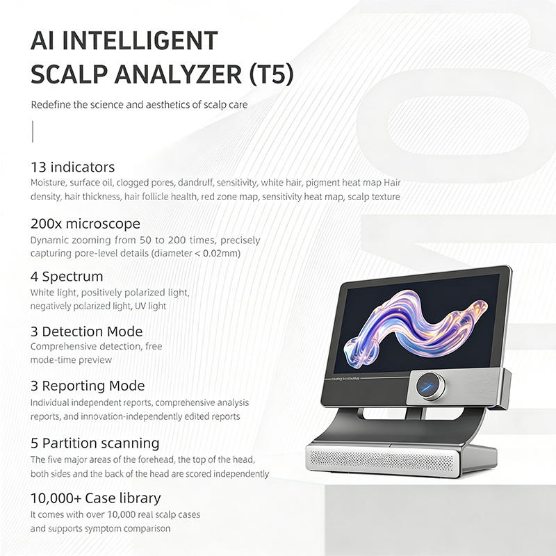 Analyseur de peau intelligent AI pour les soins des cheveux, caméra d'analyse du cuir chevelu, analyse du cuir chevelu avec analyse comparative, recommandation de produits