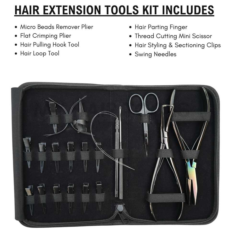 Mots-clés:Kit d'outils pour extensions capillaires, pince à sertir plate, pince à ouvrir les micro-billes