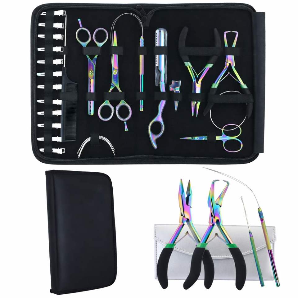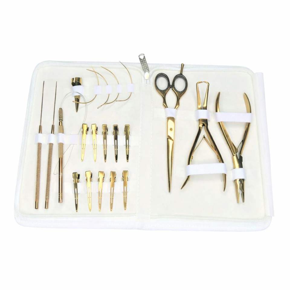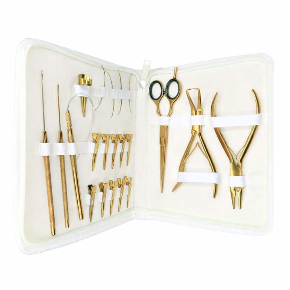 Kit d'extension capillaire Or Rose Plasma, Pince à deux trous, Ciseaux, Aiguille, Anneau, Pince à boucle