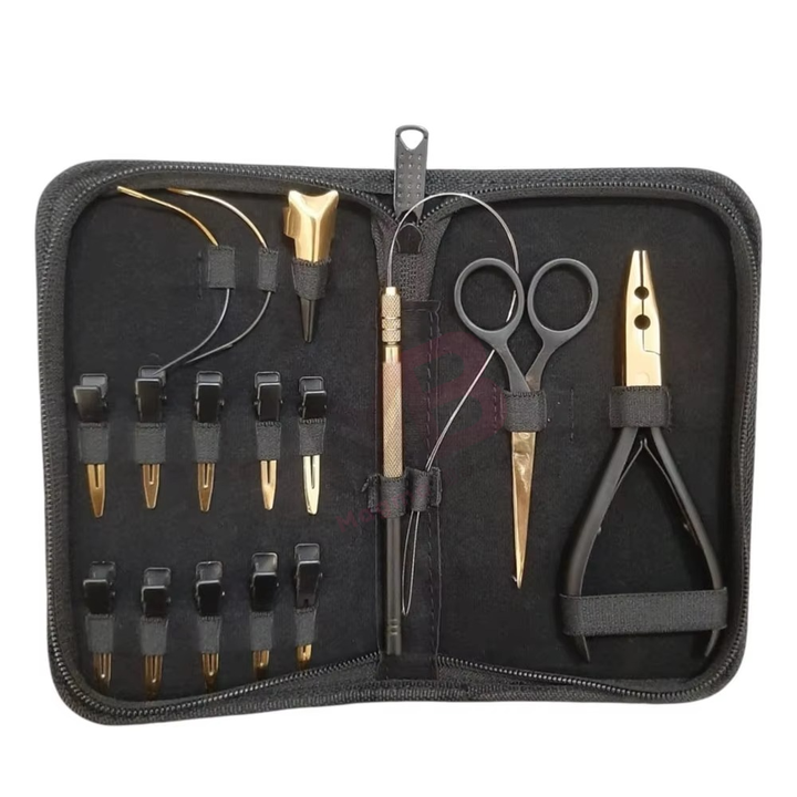 Kit d'outils pour extensions capillaires à micro-anneaux en acier inoxydable or et noir – Pince de coiffure pour bandes et micro-liens – Meilleure offre