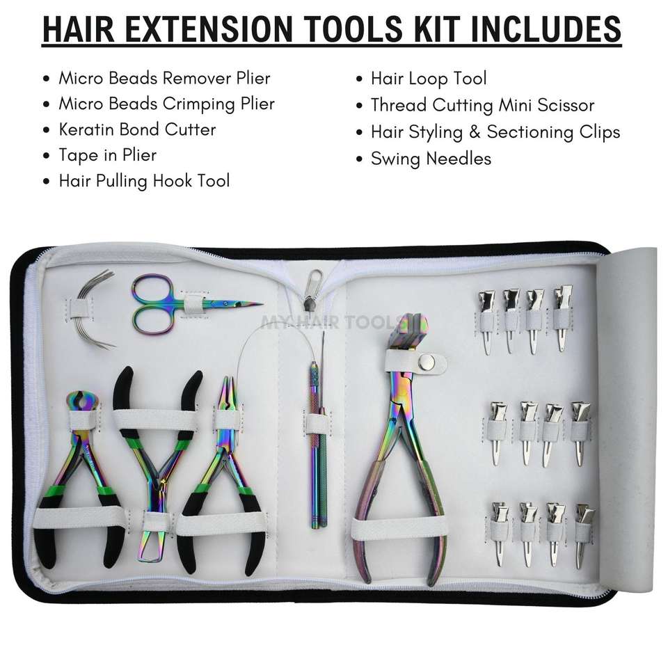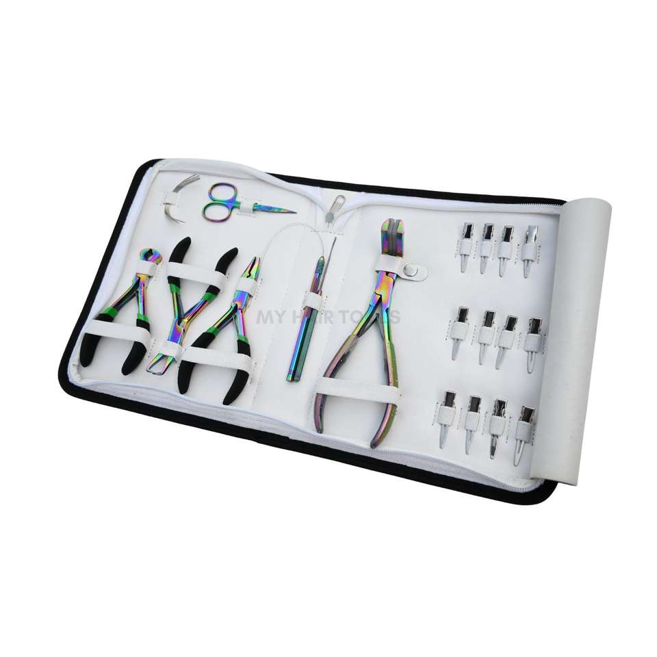 Keywords:rainbow hair extension tools kit, tap-in plier, hair extension