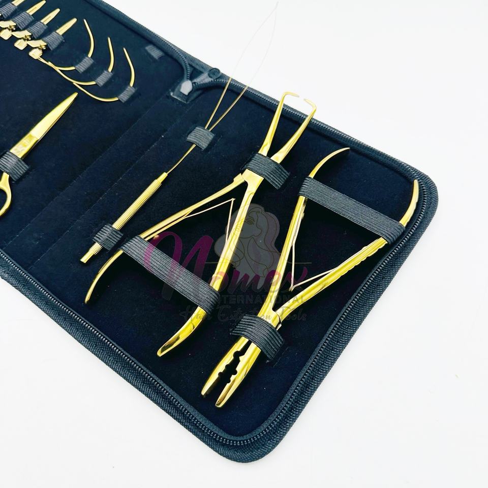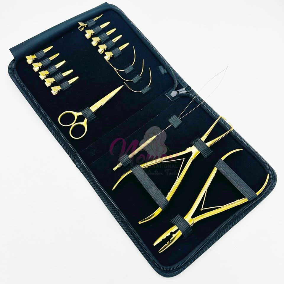 Pince Microlink en acier inoxydable plaqué or Aiguilles de type C Pince à cheveux-Kit d'outils d'extension de cheveux