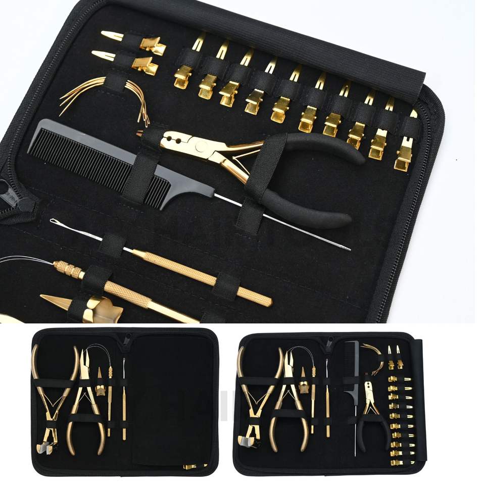 Mots-clés:Kit d'outils pour extensions capillaires, pince à clipser, pince à sertir plate
