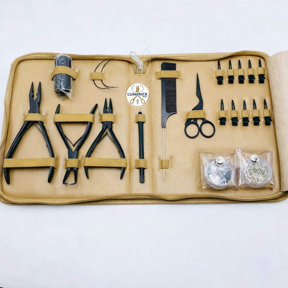 Kit d'outils pour extensions capillaires : Pinces, clips, ciseaux, fils et boîtes de perles