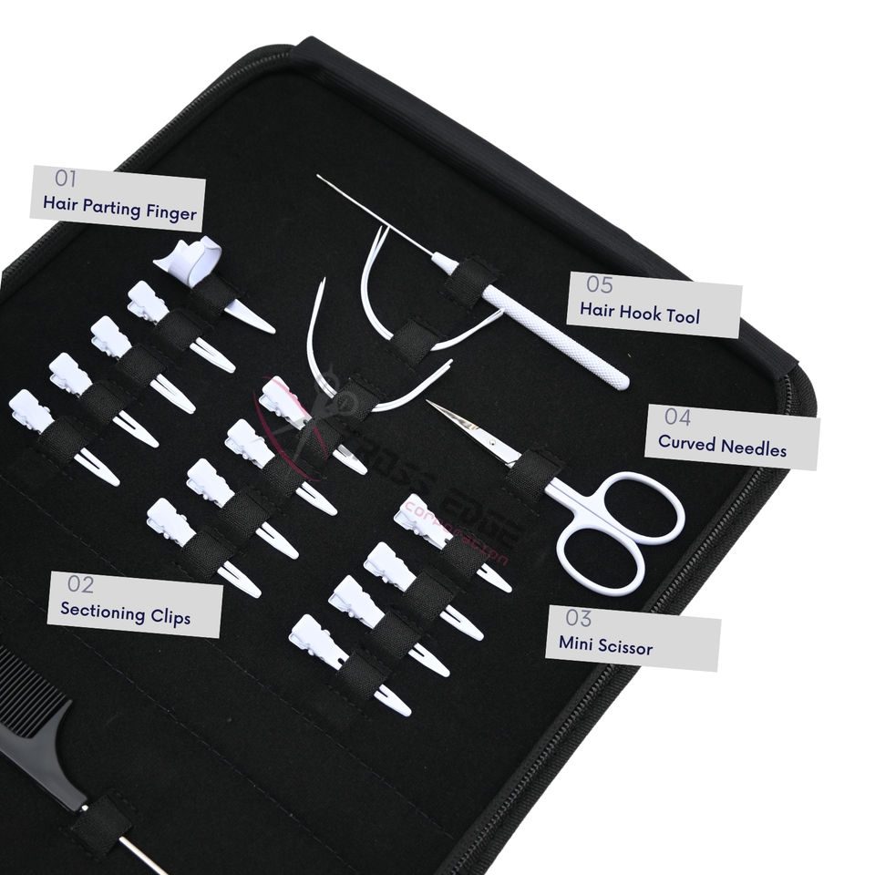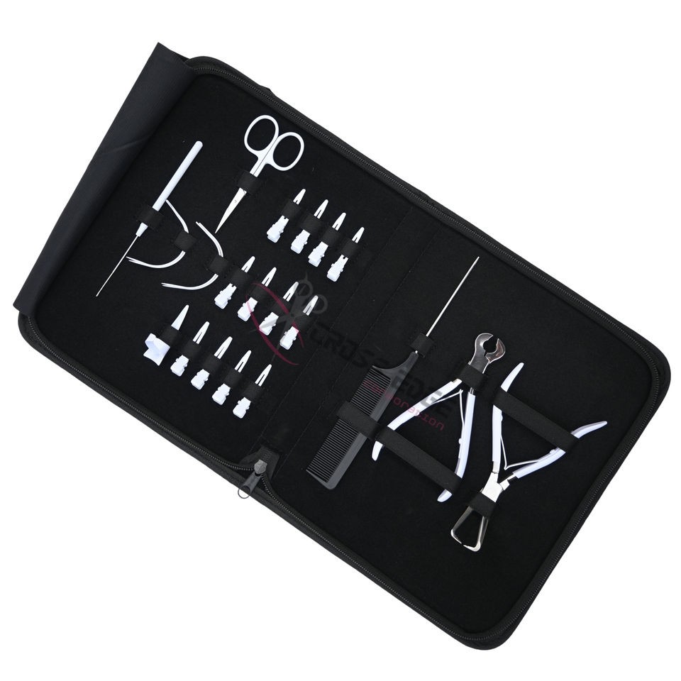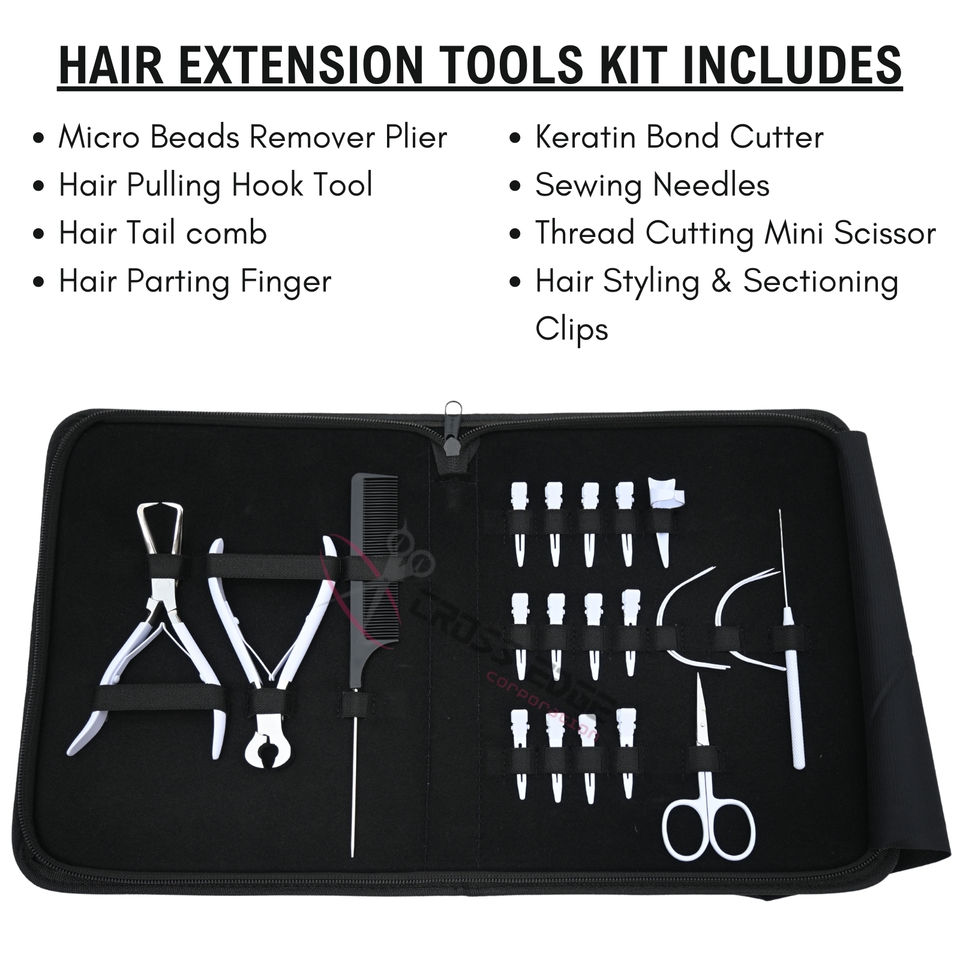 Kit d'outils pour extensions capillaires : Pince à micro-anneaux, Pince pour extensions à bandes adhésives, Pince à sertir, Coupe-keratine, Accessoires complets pour salon