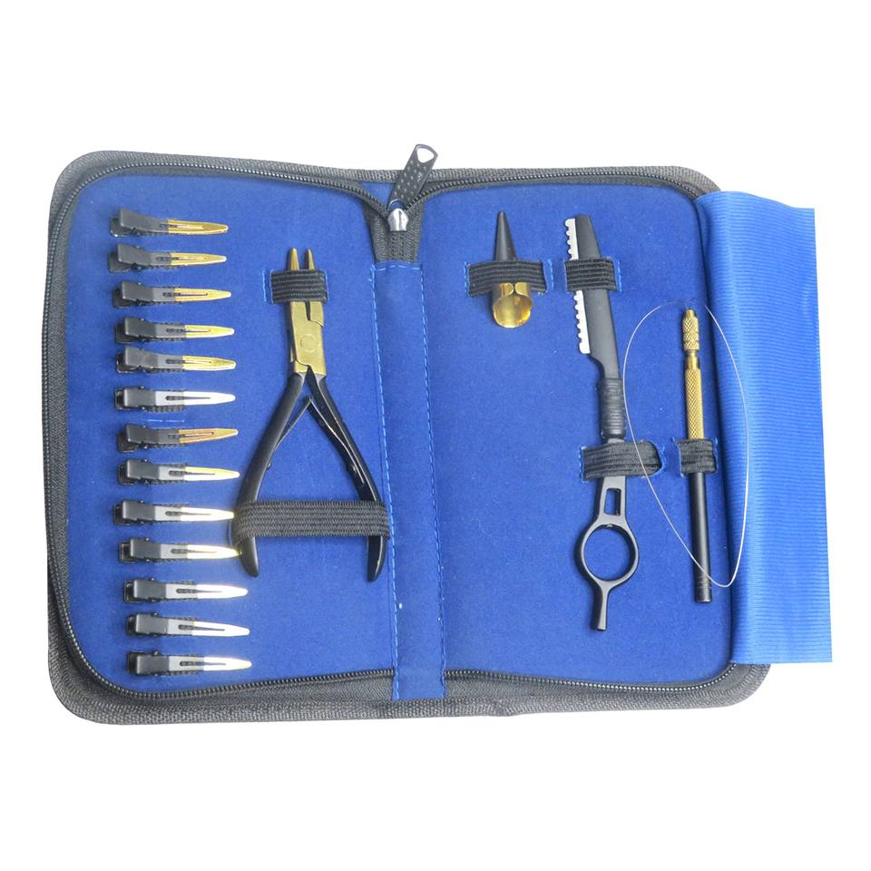 Kit d'outils pour extensions de cheveux en acier inoxydable avec pinces à perler à 2 trous, aiguilles à tisser et applicateur de ruban adhésif sans couture pour usage commercial