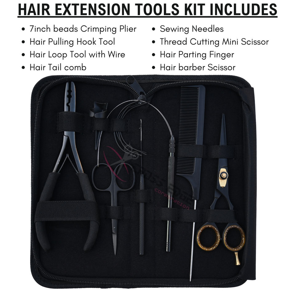 Kit d'outils pour extensions capillaires avec pince à sertir micro-anneaux 2 trous de 7 pouces