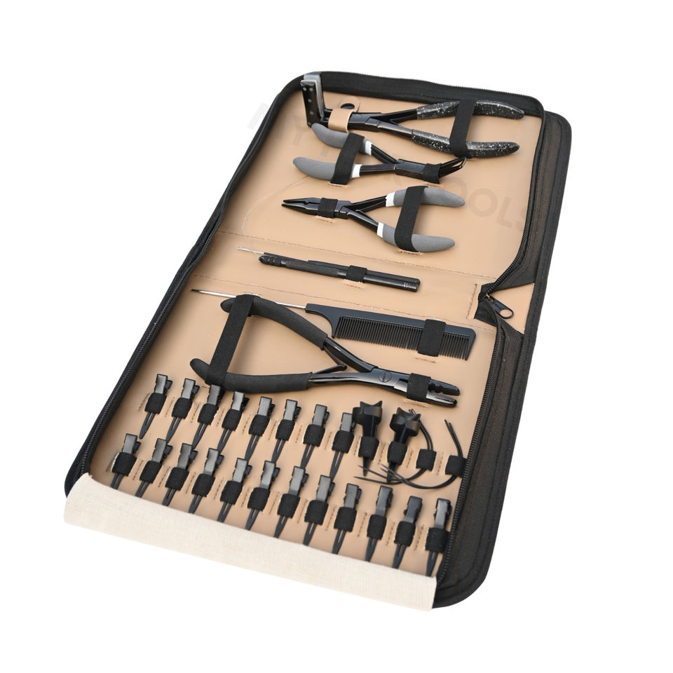 Nom du produit:Kit d'outils pour extensions capillaires avec jeu de pinces pour extensions.