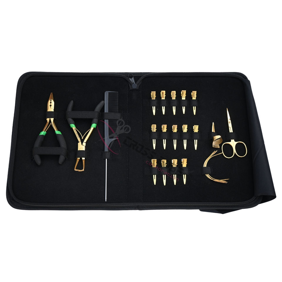 Paquet:Kit d'outils pour extensions de cheveux Gold Microlink avec emballage personnalisé accepté