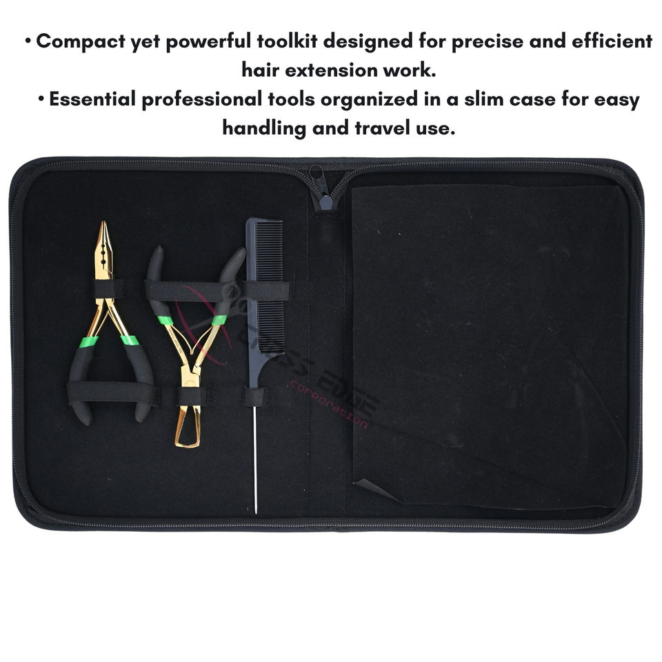 Kit d'outils pour extensions capillaires avec pinces à sertir et à retirer les micro-billes