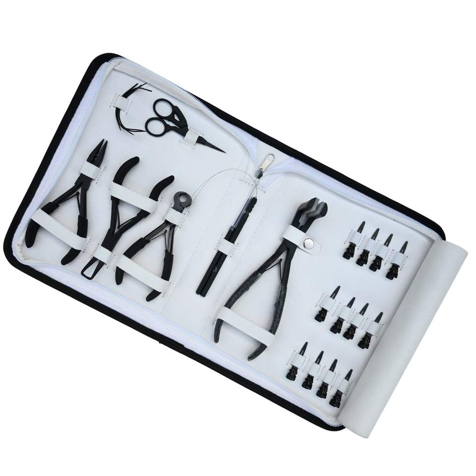 Kit d'outils pour extensions de cheveux avec applicateur de ruban adhésif, pince à perles à trois trous, coupe-fusion, outil de retrait de perles, enfileur de boucles, crochet et pinces