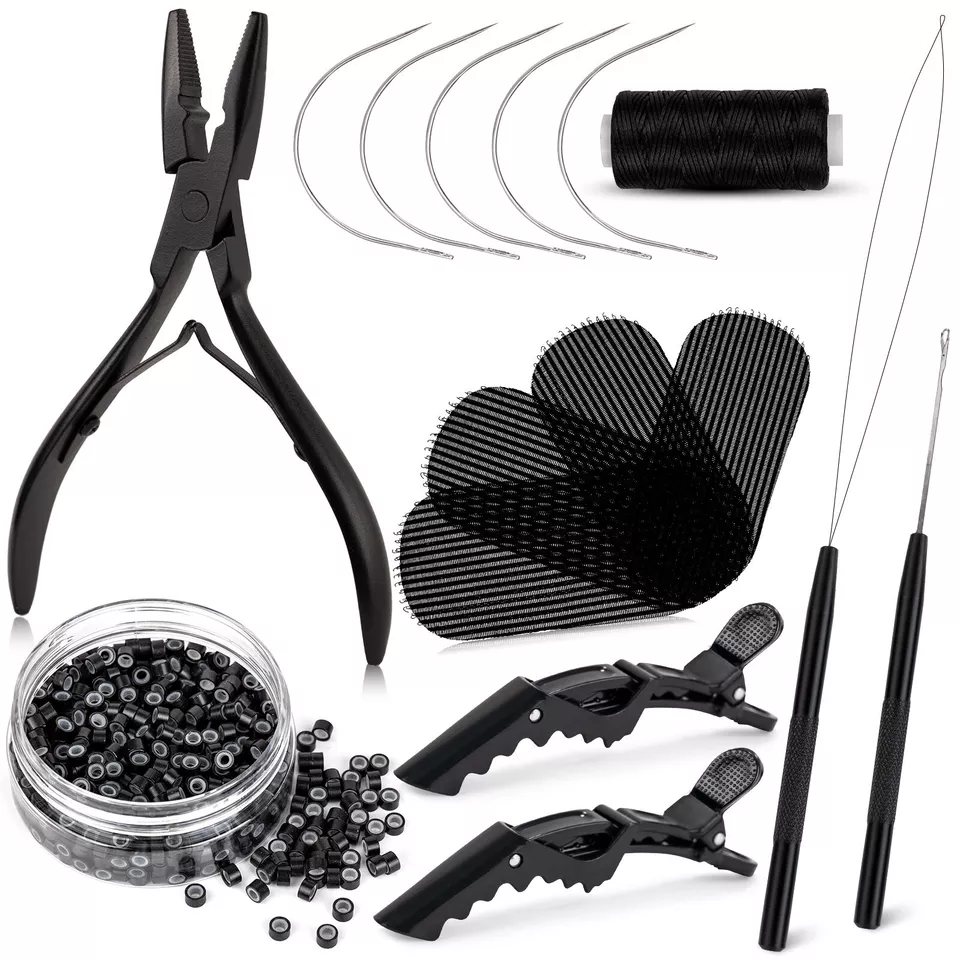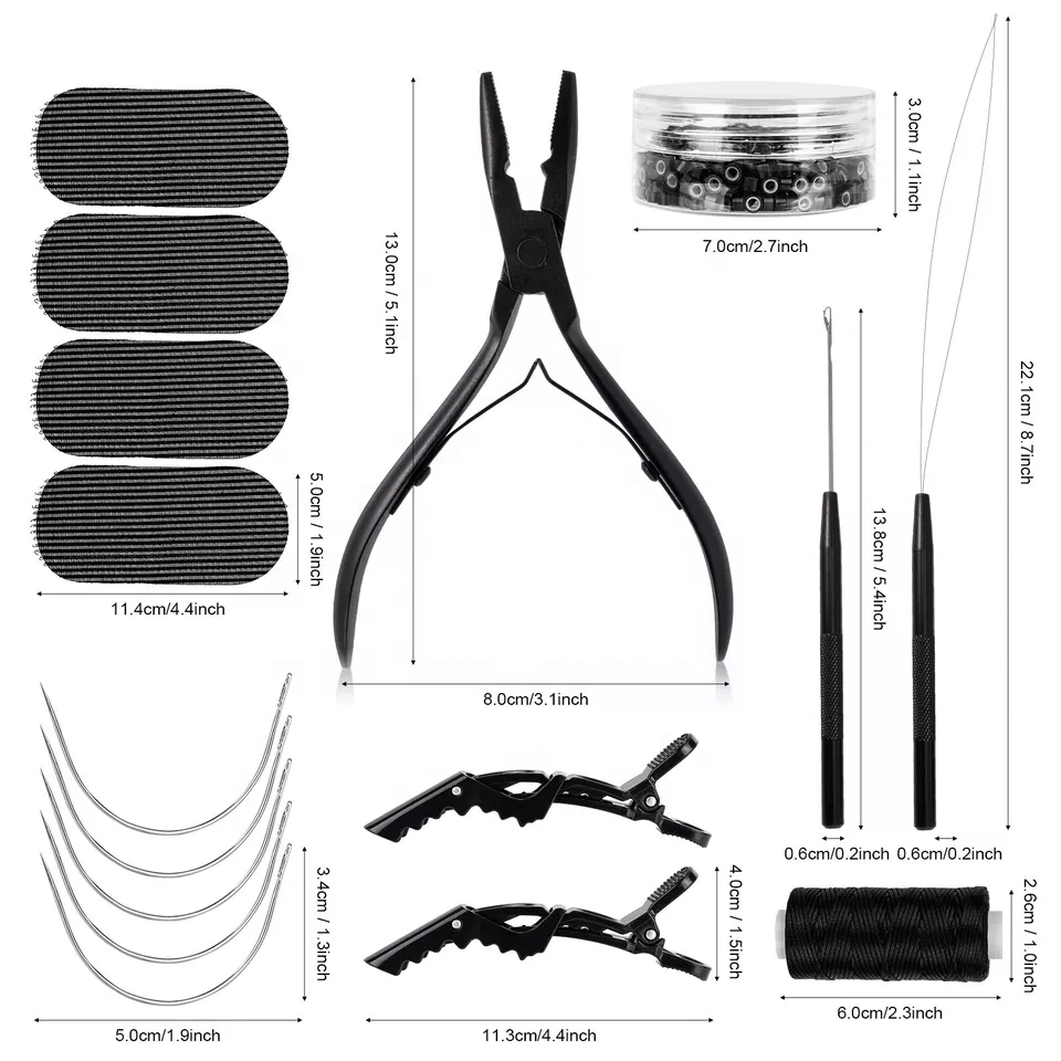 Outils d'extension de cheveux Pince Microlink 500 perles tirant des pinces à crochet Aiguilles courbes