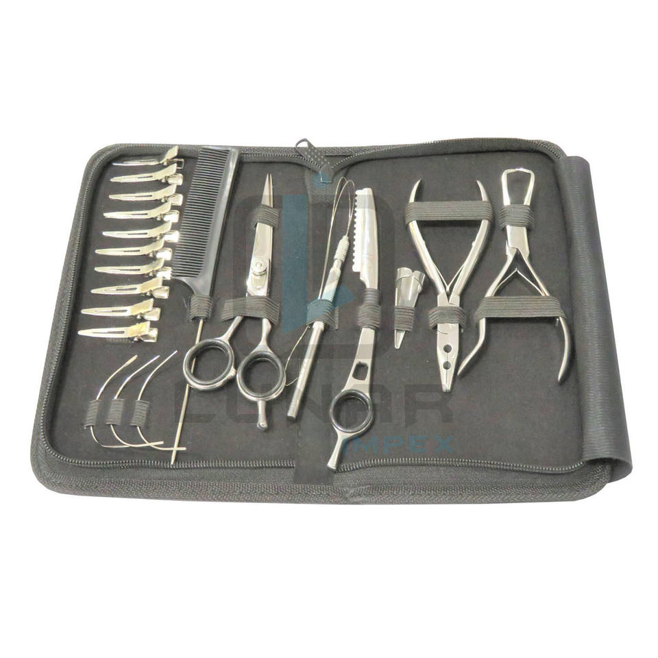 Kit d'outils d'extension de cheveux en cuir PVC avec finition polie argentée et possibilité d'étiquetage gratuit de la marque