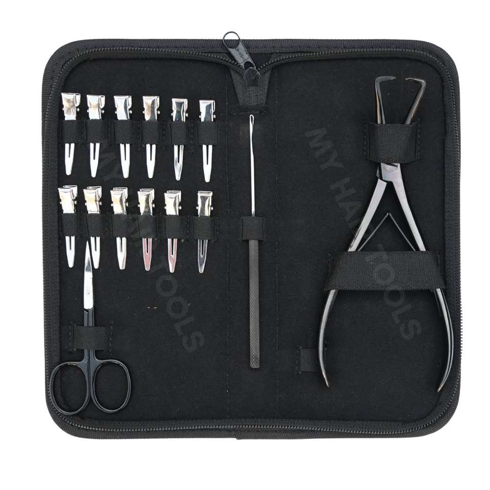 Quantité minimale de commande:1 étui Kit complet d'outils pour extensions de cheveux avec double ressort