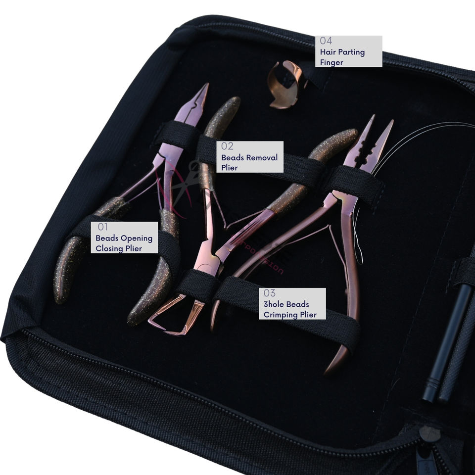 Nom:Ensemble d'outils pour extensions capillaires avec pince à sertir pour perles à 3 trous
