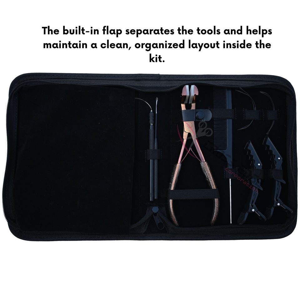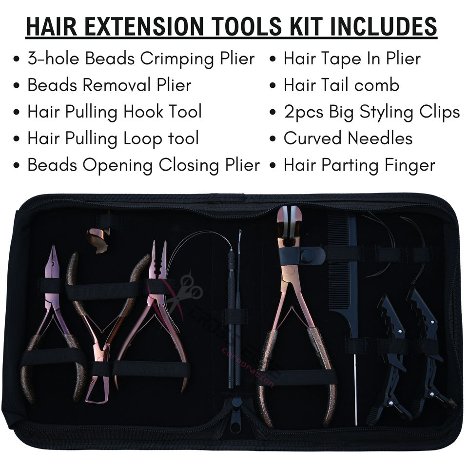 Kit d'outils pour extensions capillaires : Pince à sertir les perles à 3 trous, Pince pour extensions adhésives, Outil d'ouverture et de fermeture des perles, Crochet, Boucle, Pinces de sectionnement Jumbo