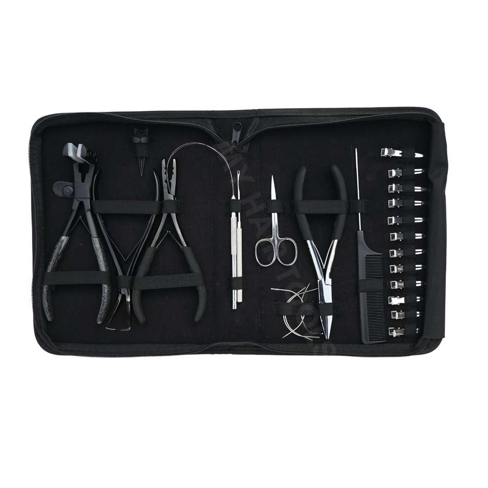 Quantité minimale de commande:1 étui Kit d'outils d'extension de cheveux avec jeu de pinces à sertir les perles