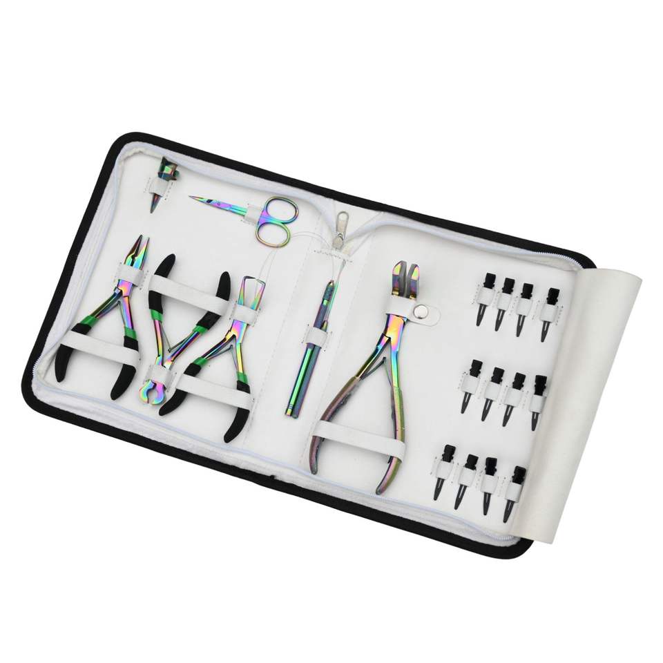 1 étui d'outils d'extension de cheveux avec pince à ruban et outil d'ouverture de perles