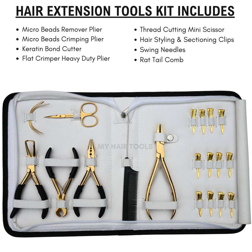 Kit d'outils pour extensions de cheveux avec designs personnalisés - Pince à microbilles à 3 trous