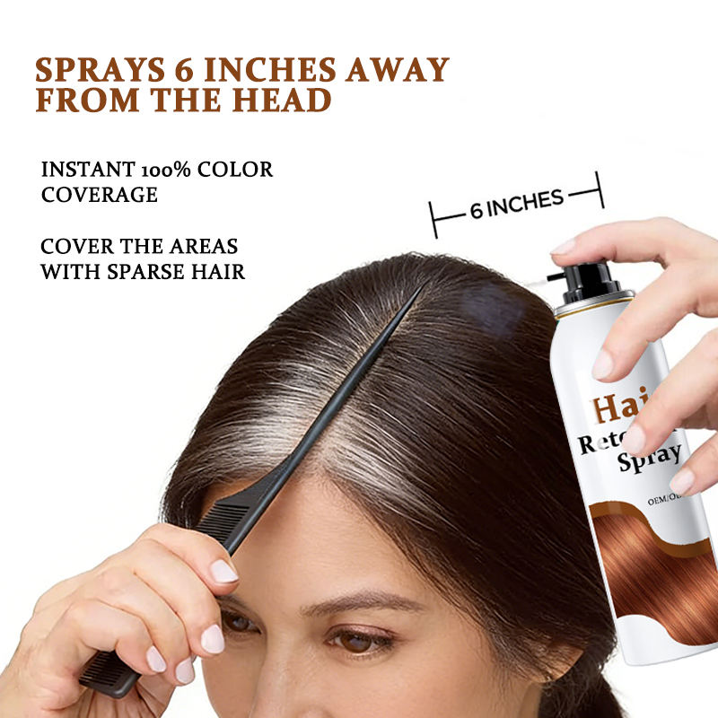 Spray de retouche capillaire OEM ODM – Couvre les cheveux blancs, corrige la couleur, fixe la teinture – Aérosol – Usine cosmétique