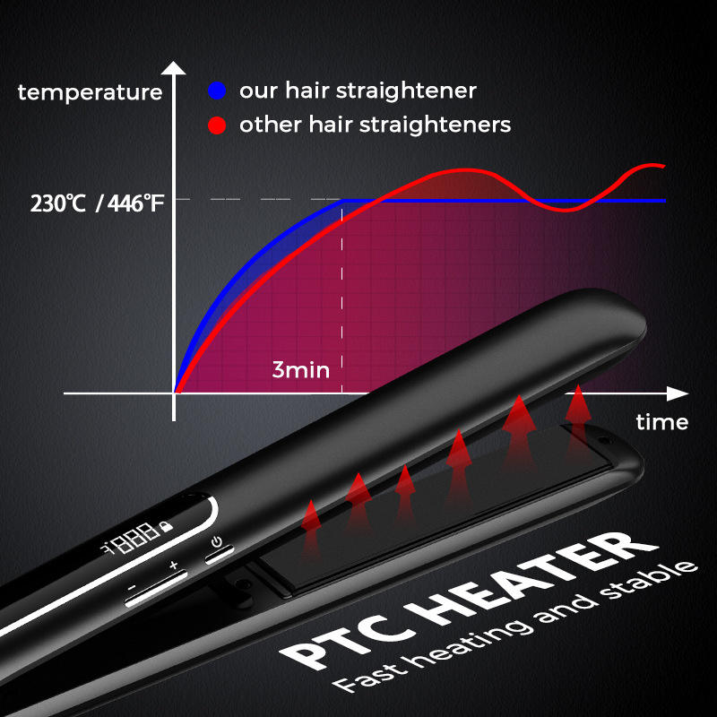 Lisseur de cheveux 2 en 1, plaque en titane PTC à ions négatifs, 55W, 5 réglages de température pour cheveux secs et humides