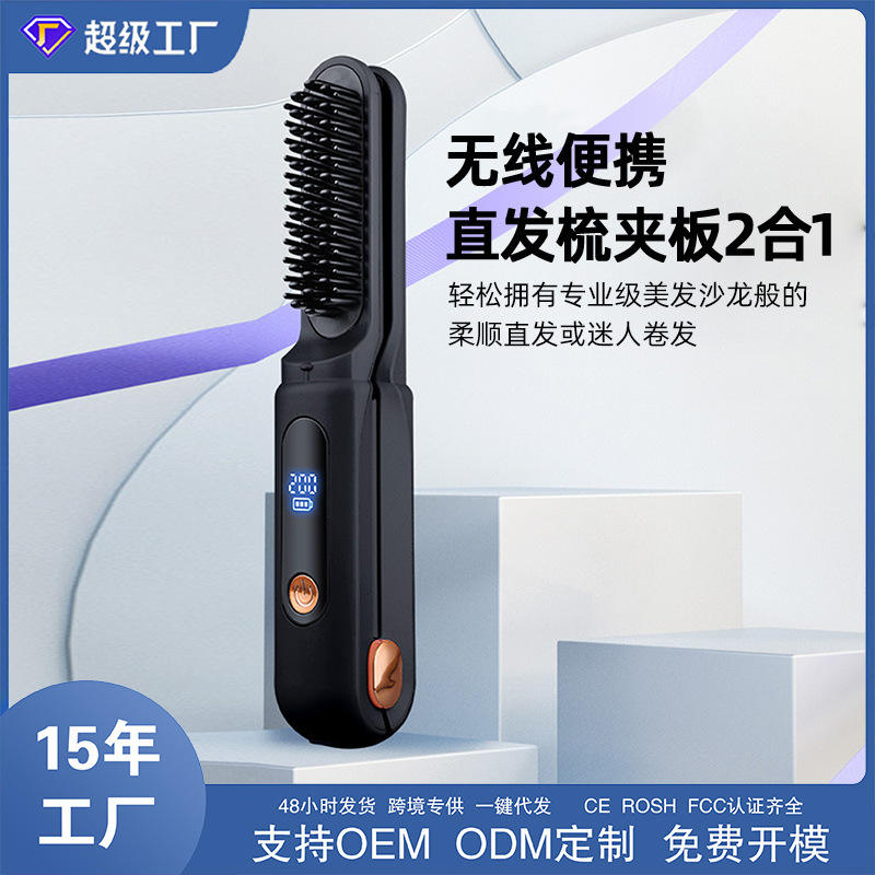 Lisseur de cheveux 2 en 1 sans fil, fer à friser électrique avec contrôle de la température pour le coiffage des cheveux