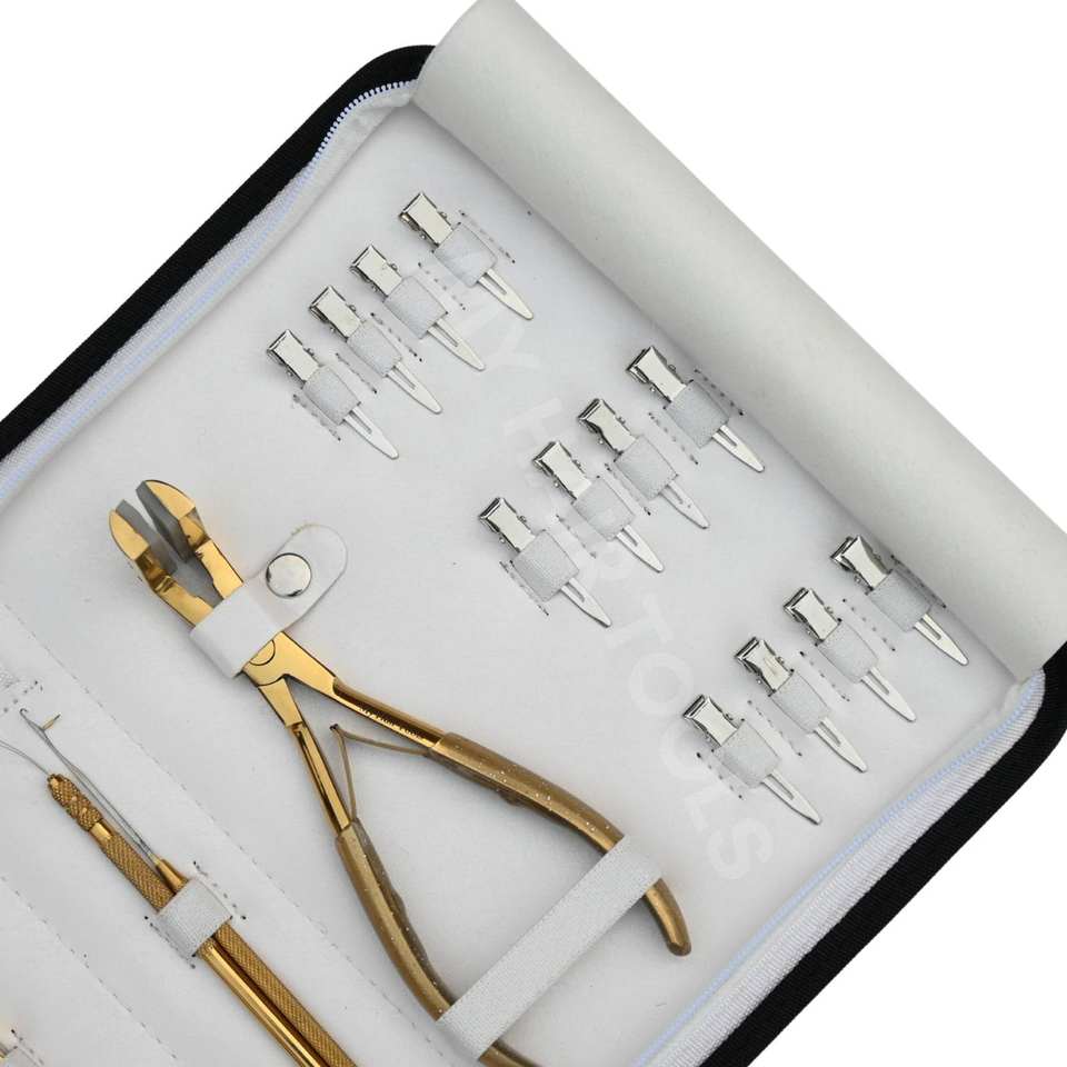 Caractéristique:Ensemble d'outils pour extensions de cheveux dorées à fixation forte, pinces à sertir pour micro-billes