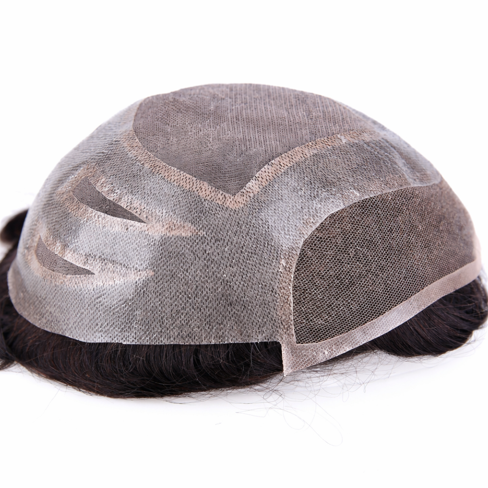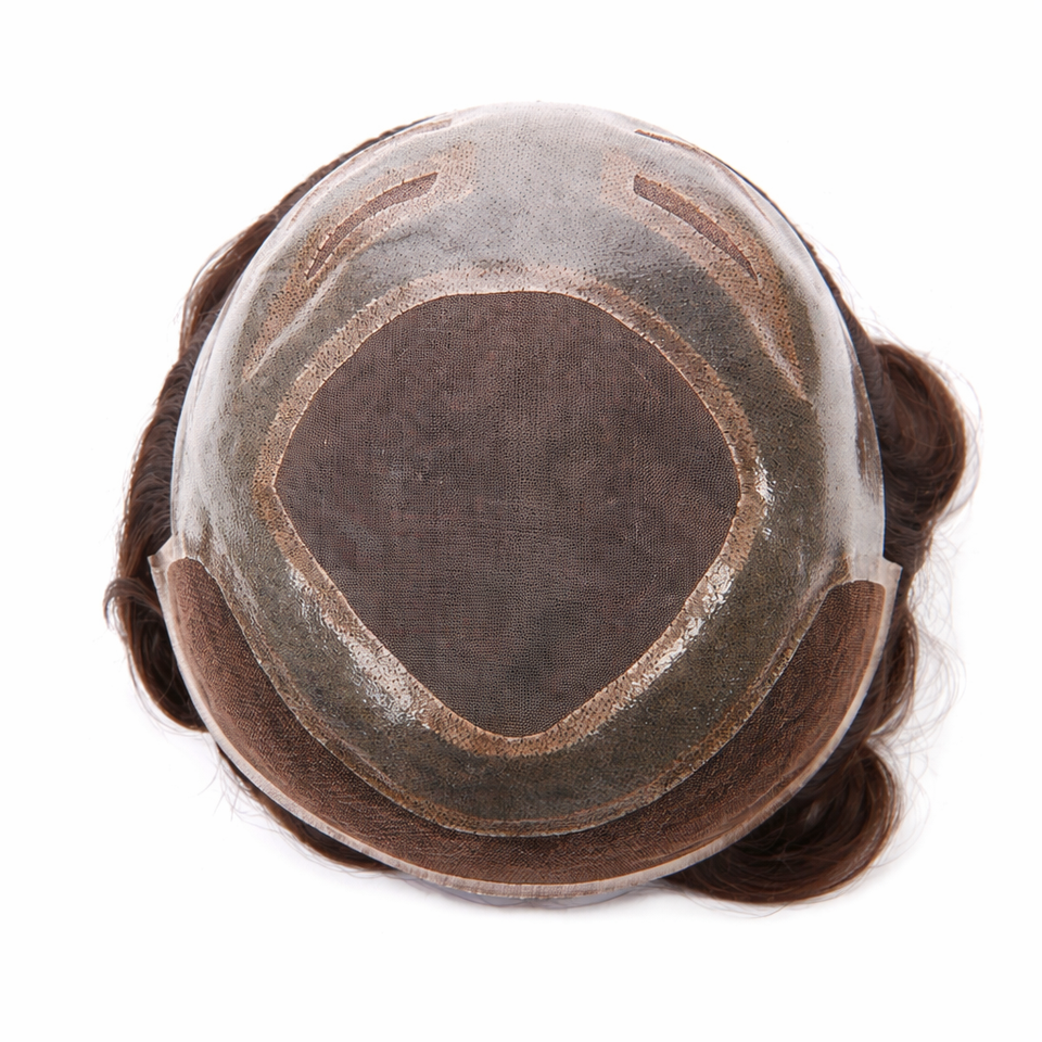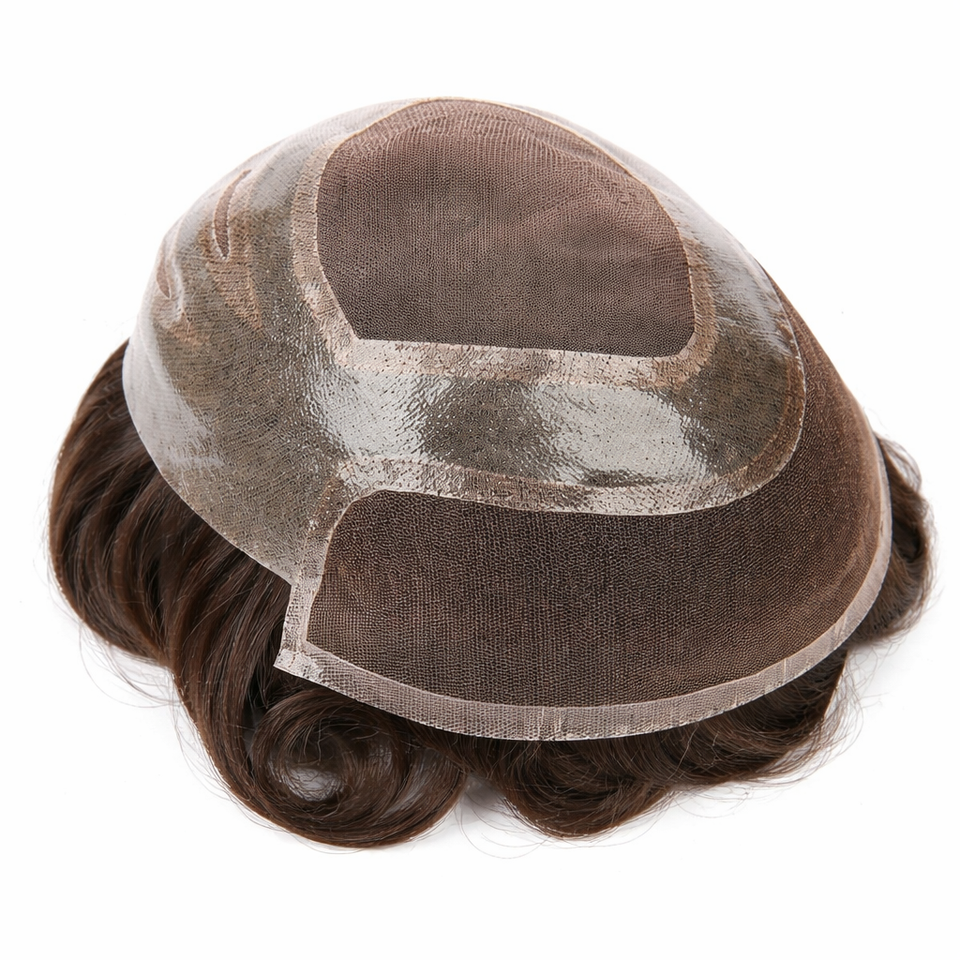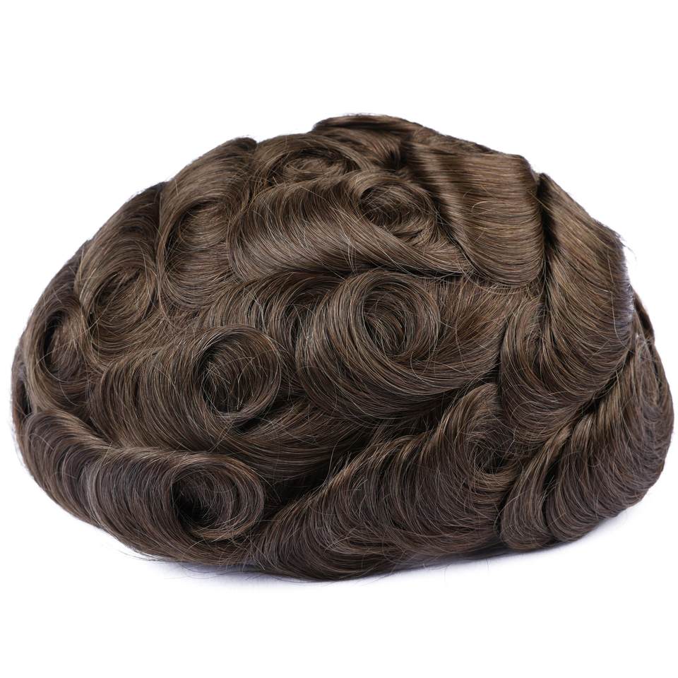 Hair System for Men 100% Human Hair Mens Hair Piece Brown Wavy Toupee Breathable Lace Front