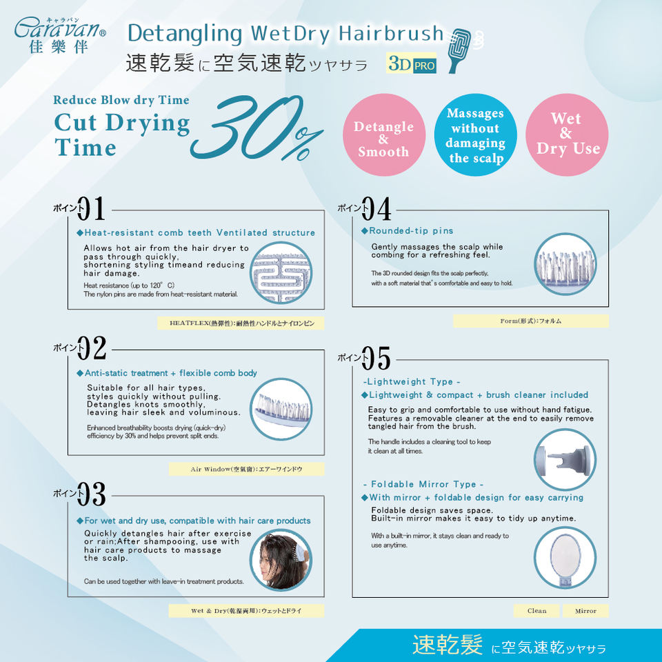 Function:Quickly styling hair without pulling and smoothing out frizz