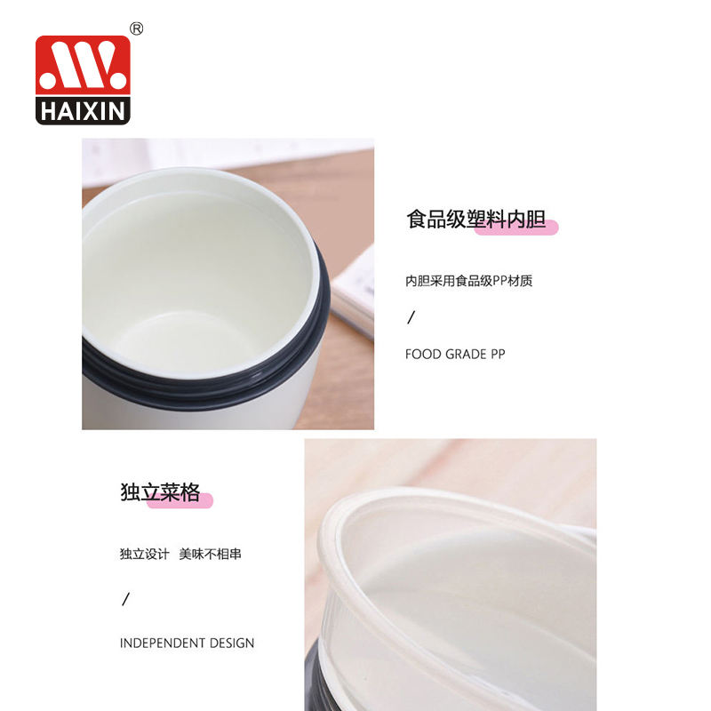 Haixin 1000ml Bol à soupe isotherme double couche hermétique, pot de petit-déjeuner portable, boîte à bento en plastique anti-fuite