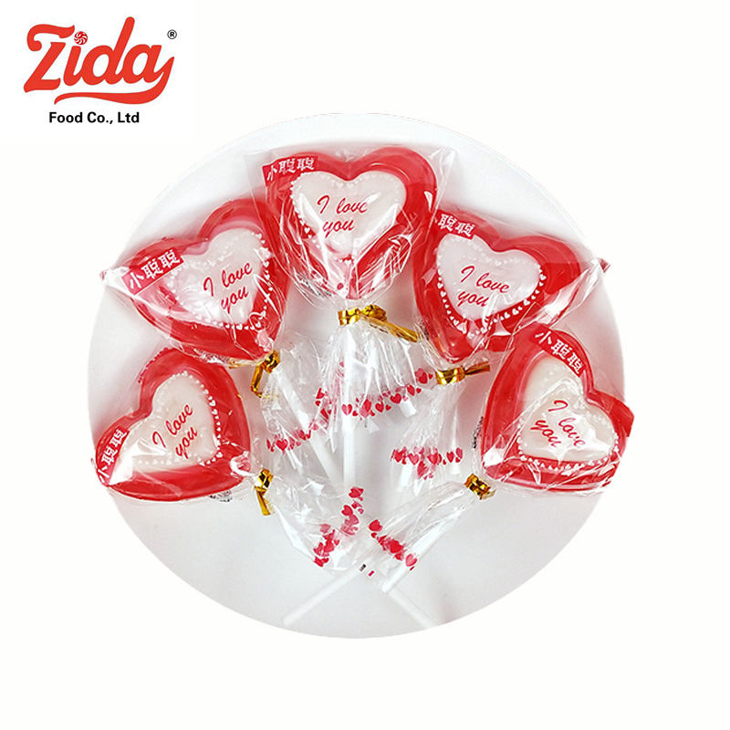 Sucette rouge Halal en forme de cœur Assortiment de saveurs de fruits Bonbons sucrés