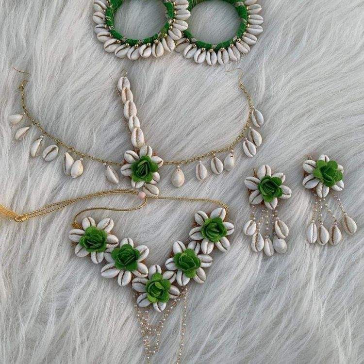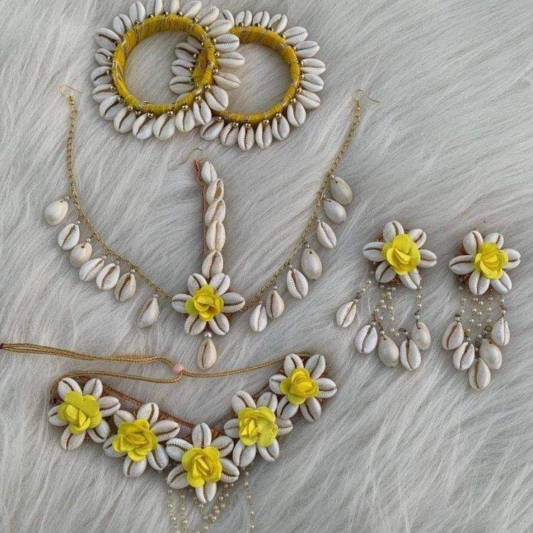 Ensemble Haldi Bijoux de Mariage Nuptiale avec Fleurs