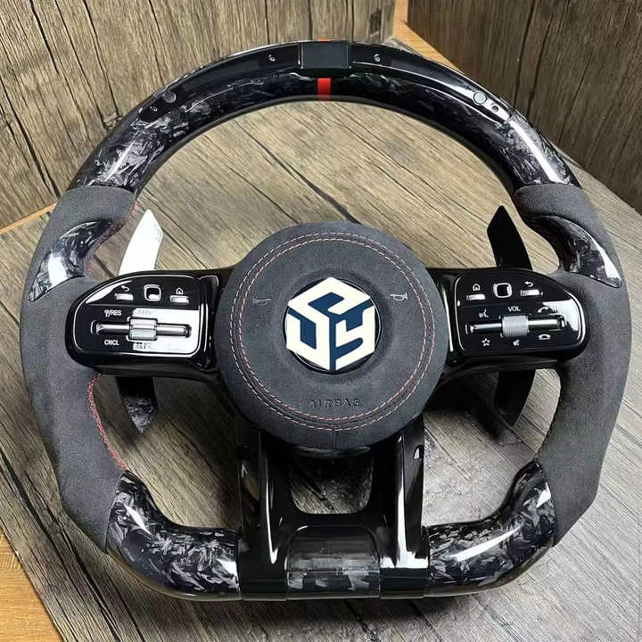 Demi Alcantara LED Volant en Fiber de Carbone pour Mercedes Ben ML W164 W166 W211 W212 C117 C118 W251 W176 W204 W205 C63s AMG