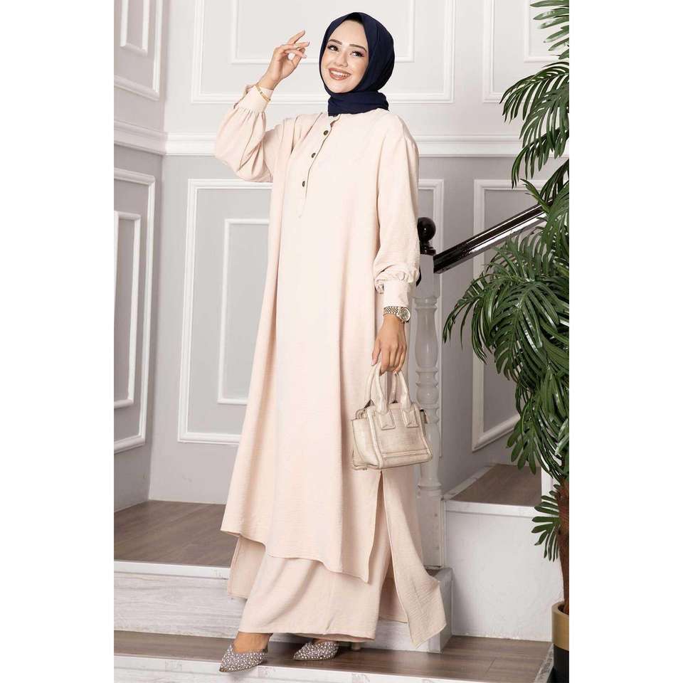 Ensemble 2 pièces Hijab long à demi-boutonné avec pierres précieuses grises en vrac Pierres précieuses minérales Public ciblé Femmes