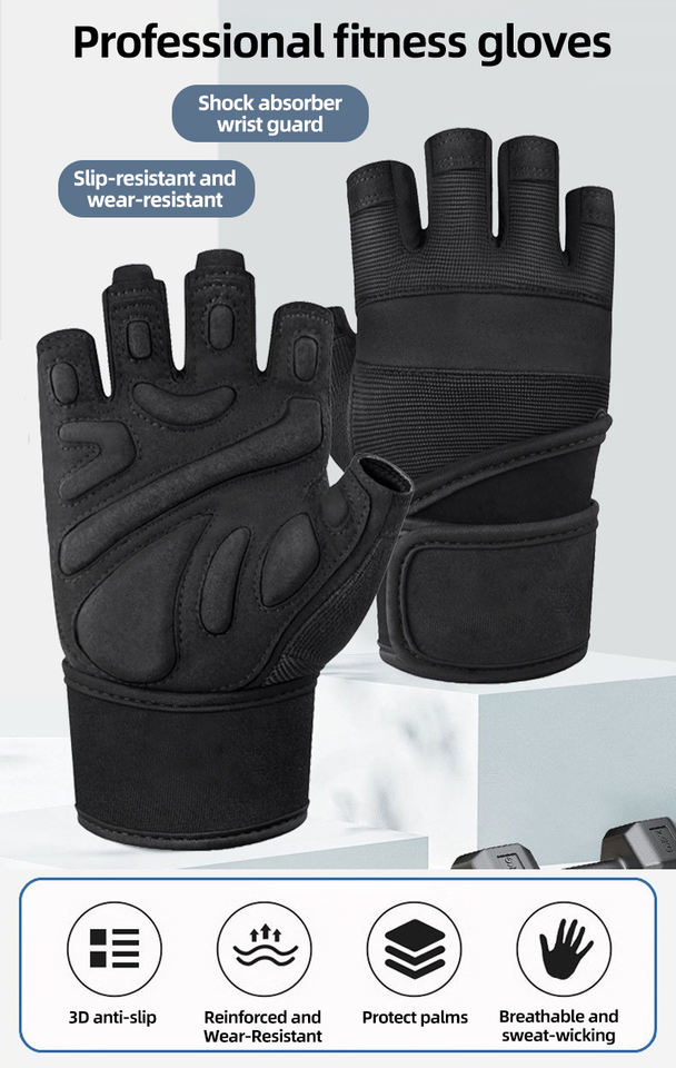Gants de sport demi-doigts antidérapants pour musculation, protection de la paume, entraînement, absorption des chocs, gym