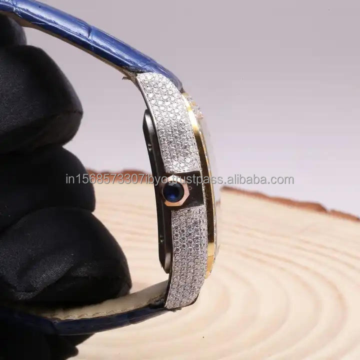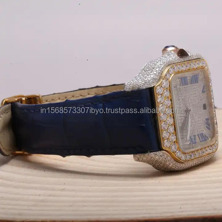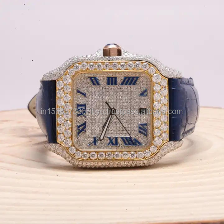 Demi glacé cadran en or rose VVS Moissanite montre-bracelet mécanique avec calendrier de qualité supérieure pour montre en diamant Trendsetters