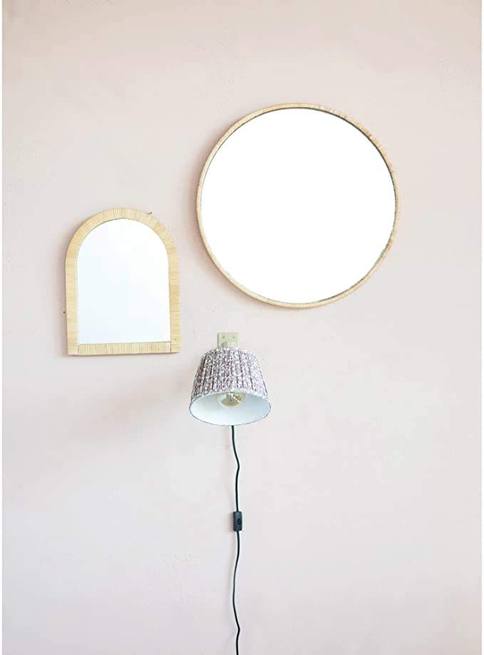 Demi Lune Design Rotin Miroir Tissé Rotin Décoratif Couleur Bronze Parfait pour la Décoration Murale Élégante et l'Accent Maison