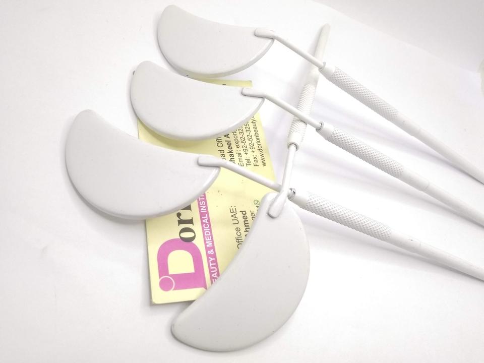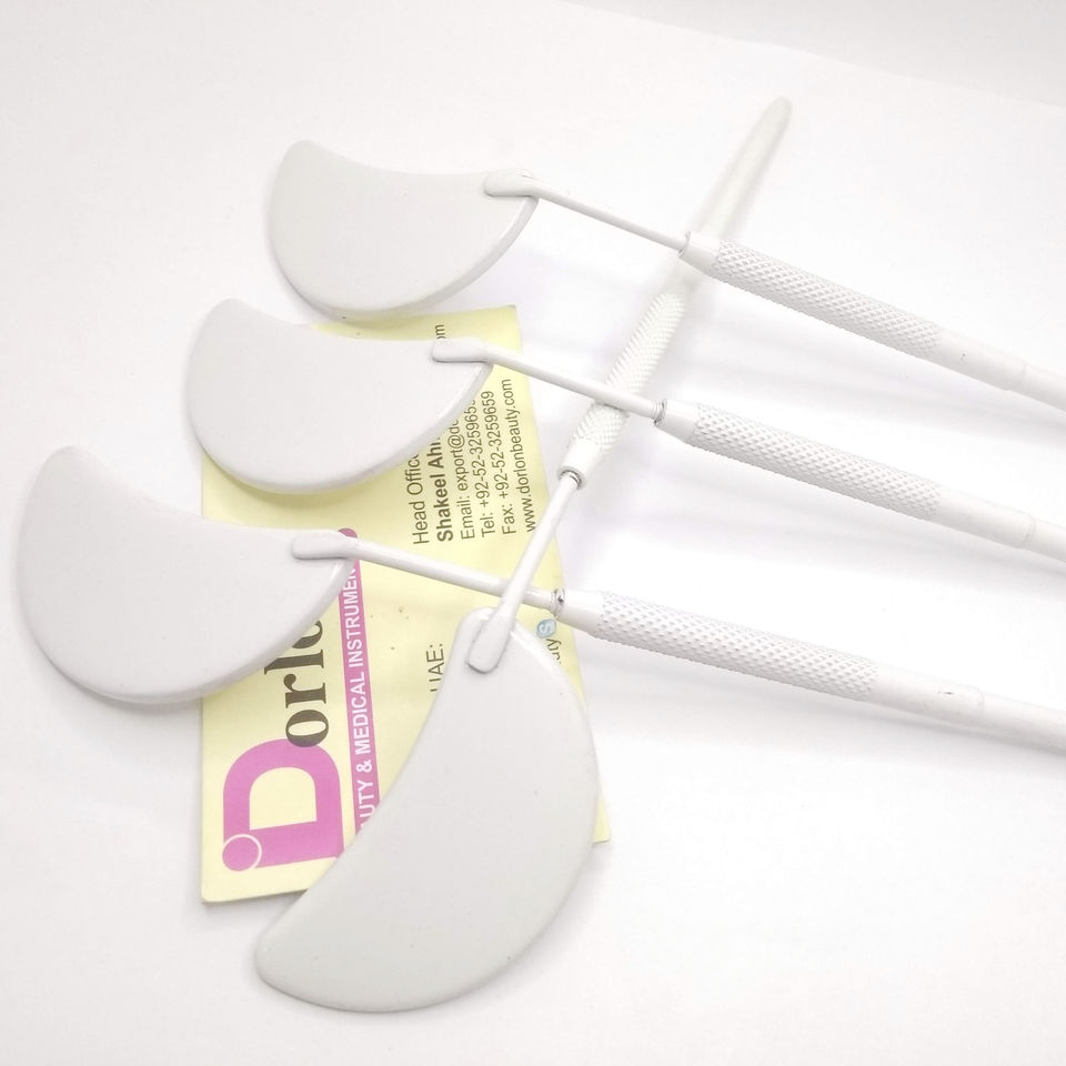 Nouveau miroir à cils en acier inoxydable en forme de demi-lune, couleur personnalisée, revêtement antistatique de précision, logo personnalisé pour les extensions de cils