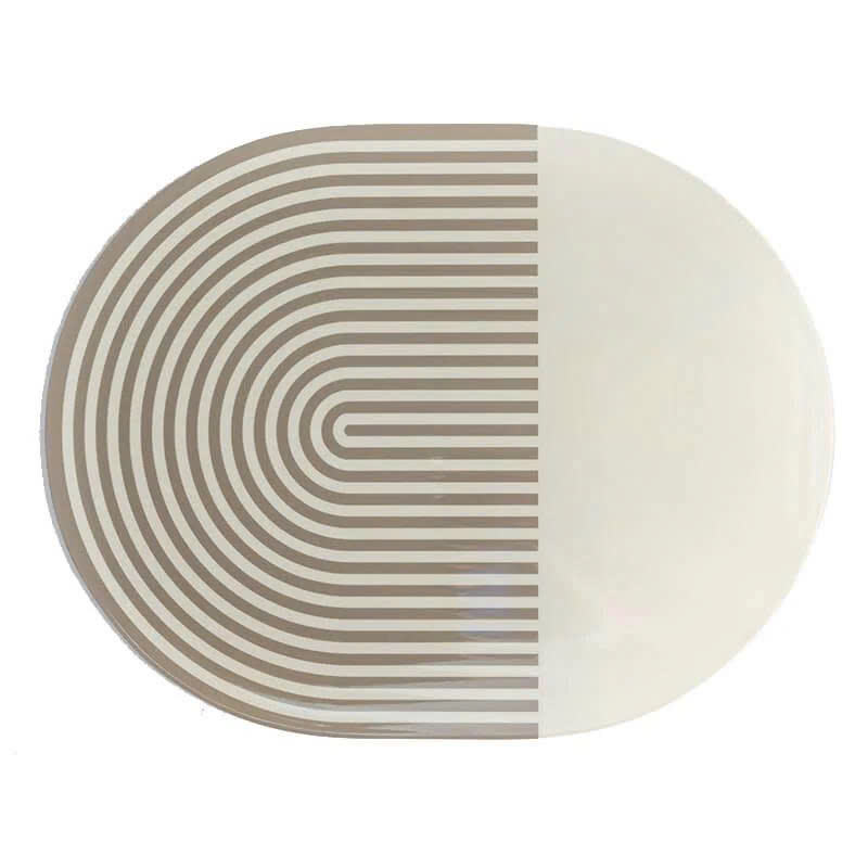 Sous-plat rond en MDF laqué à motif partiel, surface solide minimaliste avec détails linéaires, conçu pour une mise en scène de table moderne, OEM ODM