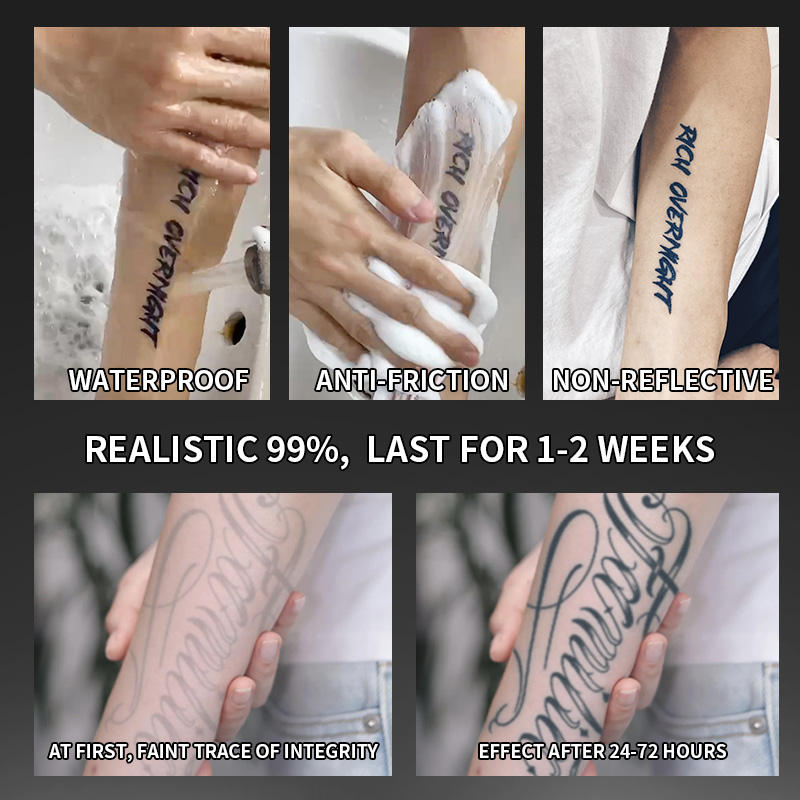 Half Sleeve Temporary Tattoo Artistic Gothic Lettering Semi Permanent Tattoo Waterproof Last for 2 Week Herbal Tattoo for Arm