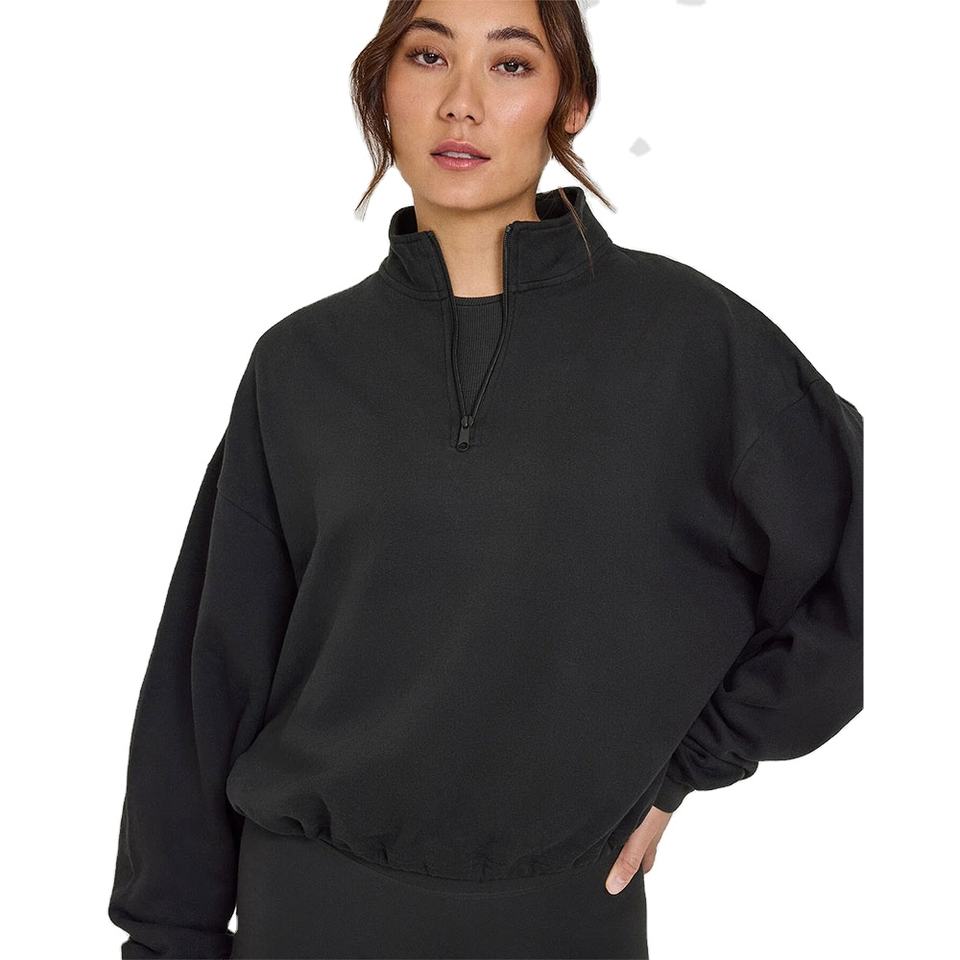 Pull à demi-fermeture éclair grande taille manches longues pull uni vierge sweats à capuche en polaire pour femmes avec logo personnalisé broderie et impression