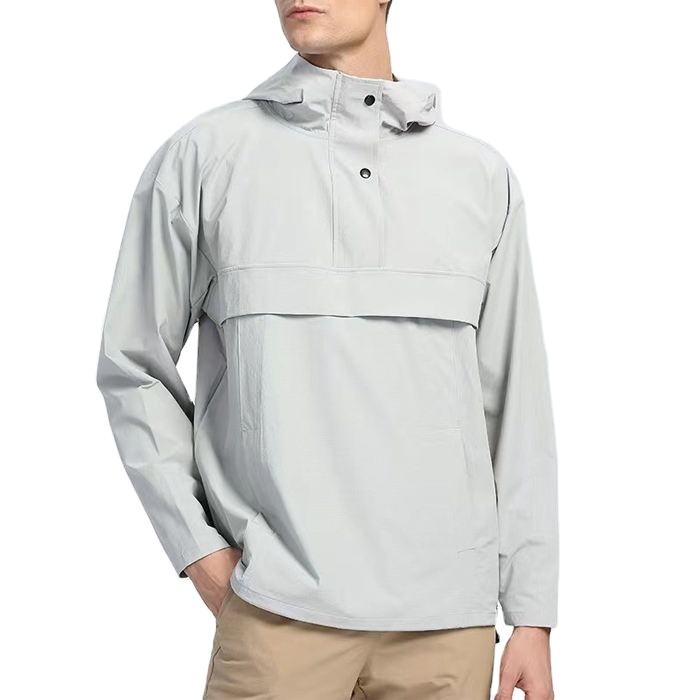 Half Zipper Pullover Men's Woven Lightweight Windproof Outdoor Sports Hooded Coat Hooded Jackets