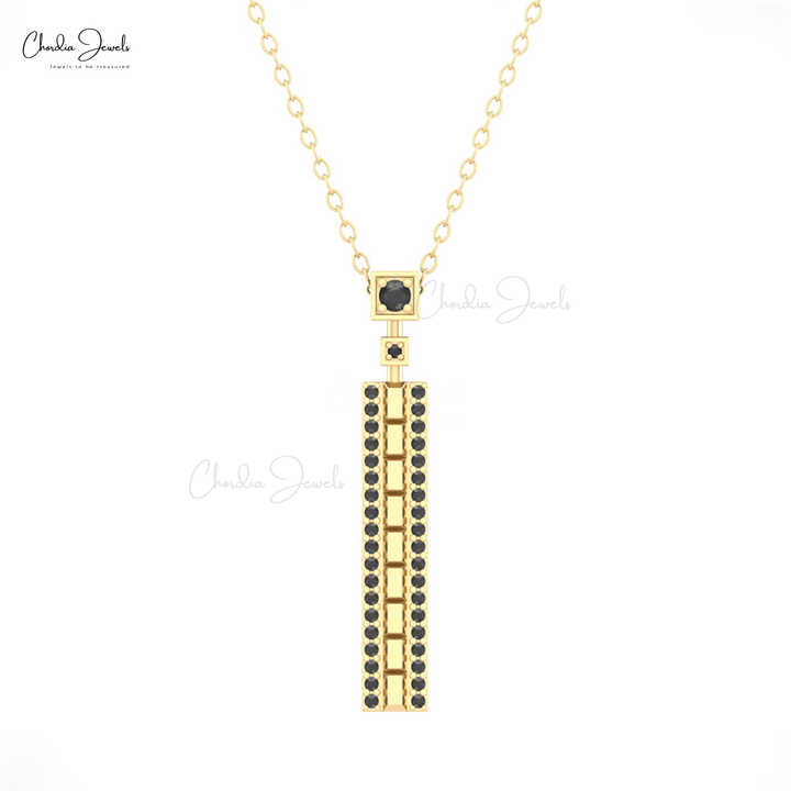 Collier statement en or fin 14 carats, serti de diamants véritables, avec barre de diamants ronds pavés de 2 mm, pour elle, au prix de gros
