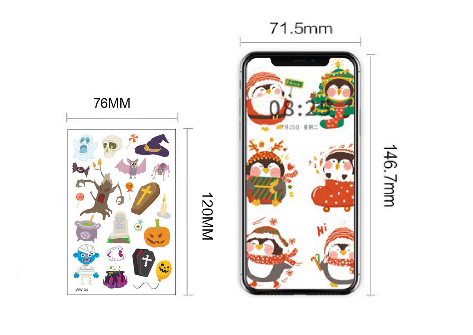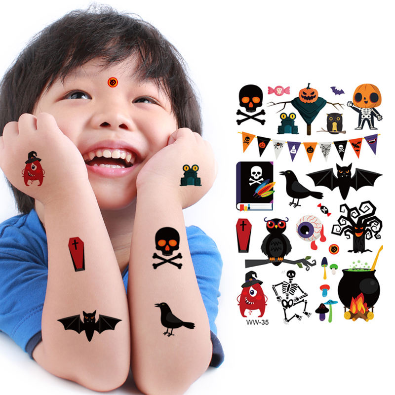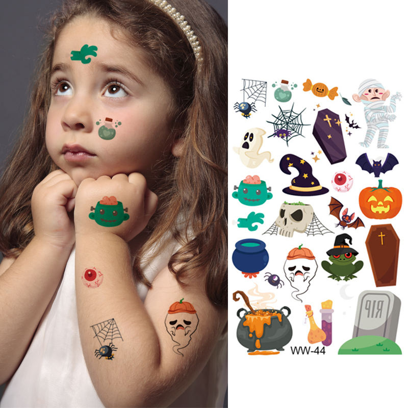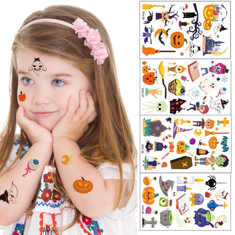 Autocollants de tatouage temporaire d'art corporel d'Halloween pour garçons et filles Impression de conception de cirque sur papier pour l'utilisation des bras