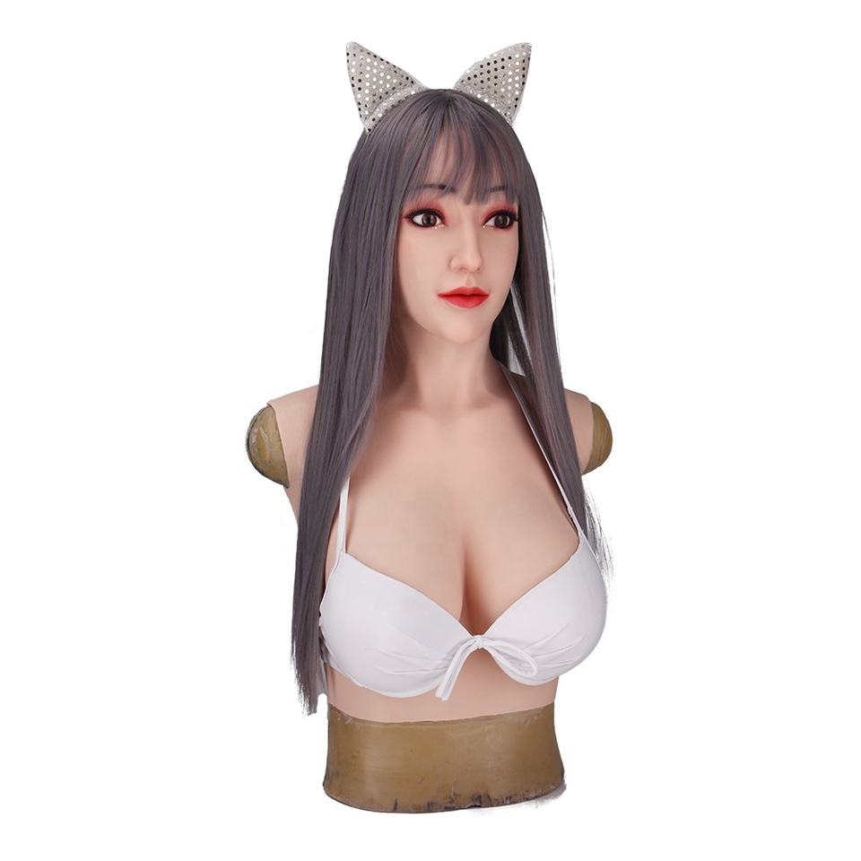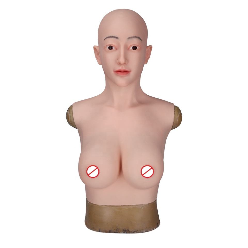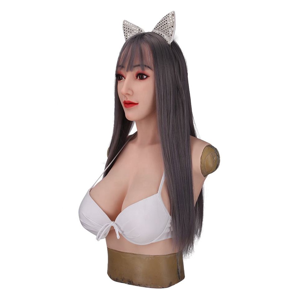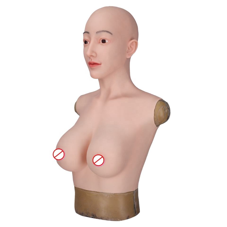 Masque de visage réaliste en silicone pour femme, accessoires de déguisement pour Halloween, cosplay, mascarade, masque de tête réaliste avec poitrine