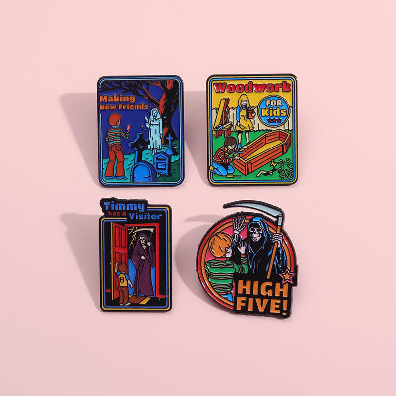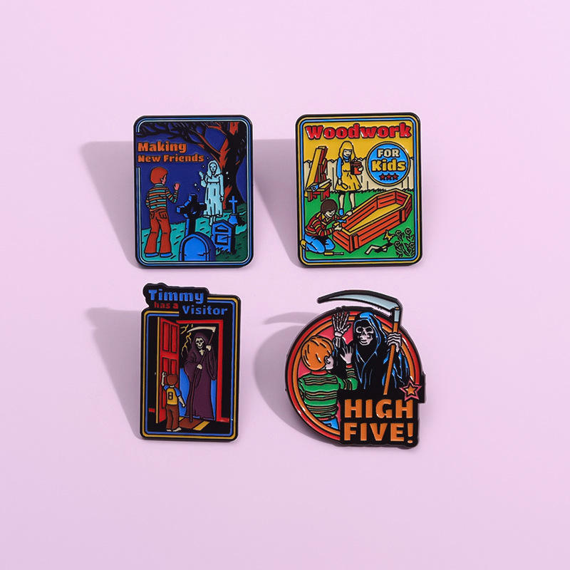 Insigne de Broche en Forme de Dessin Animé Créatif, Cercueil Coloré, Boiserie, Épouvantail Haut Cinq, Noir Nickel, Amour
