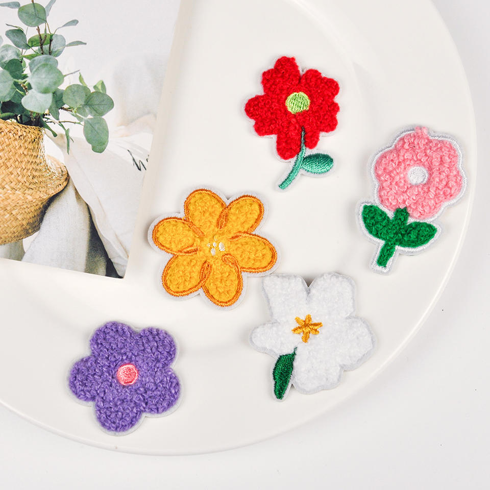 Patchs de fleurs en chenille brodés personnalisés pour Halloween Letterman drapeau au design différent matériau en feutre thermocollant pour parc national