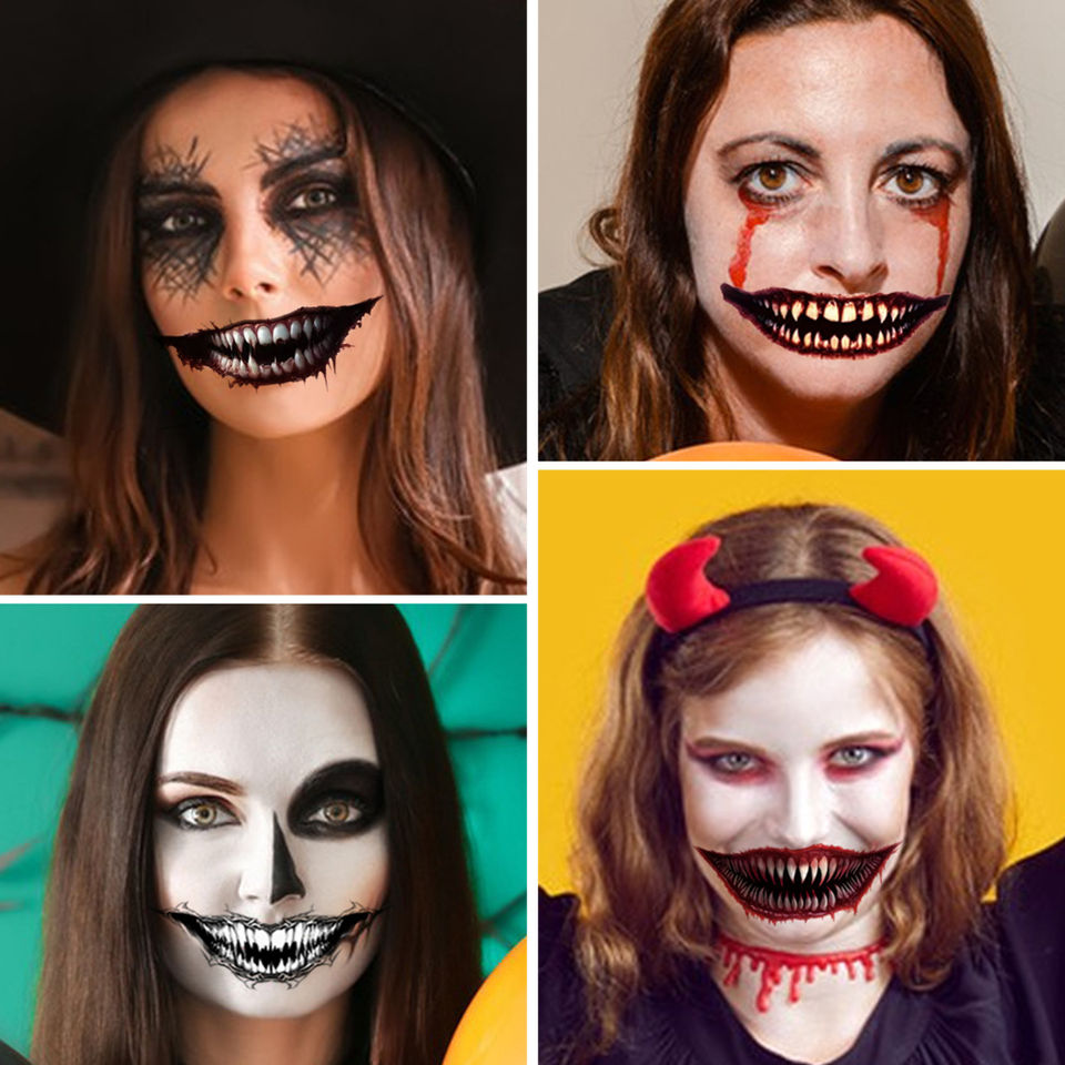 Autocollants décoratifs DIY pour Halloween, lèvres et dents effrayantes, faux tatouages pour maquillage de fête d'horreur, autocollants effrayants pour le visage/le corps