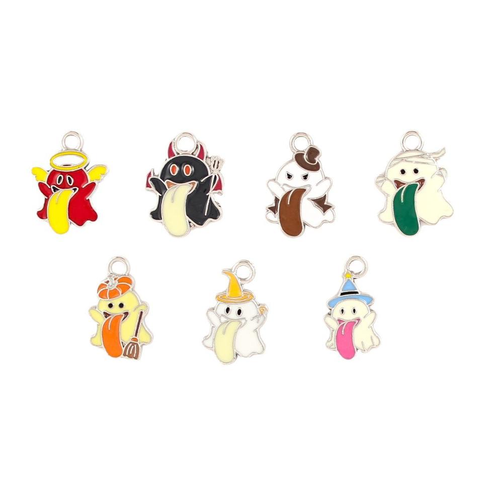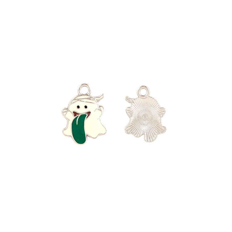 Accessoire de bijoux à bricoler soi-même pour Halloween Bracelet à pendentif petit fantôme avec goutte d'huile en alliage et capuchons de perles