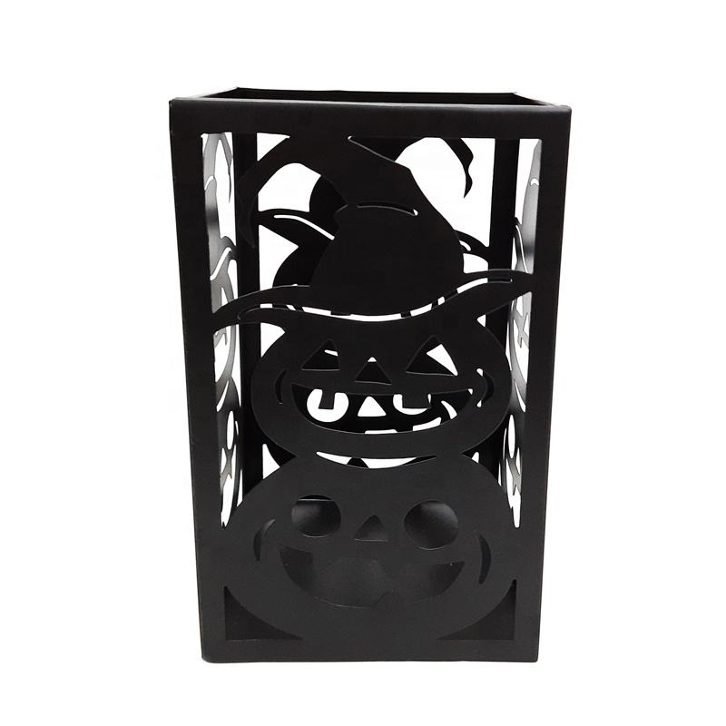 Bougeoir Votif Carré en Métal Design Sorcière, Décoration d'Halloween, Bougeoir Noir, Pour Table, Jardin, Décoration de Maison